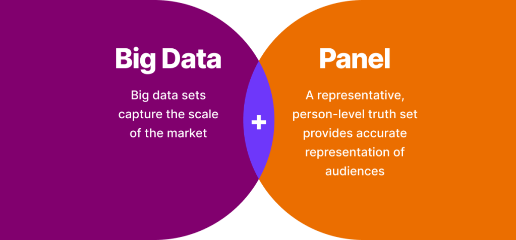 Nielsen’s data scientists validate hundreds of millions of data points and billions of impressions across screens against information from the real people who make up our panel, correcting for biases and other gaps in the data. This yields a person-level measurement that is representative of the larger population at scale. Discover the deepest view of audiences today with Big Data + Panel integrated into Nielsen’s products for national and local TV measurement, as well as cross-media measurement.